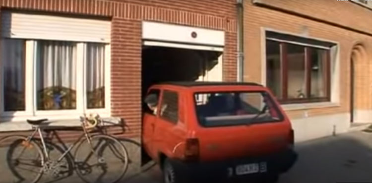 He parks the car in perfect alignment to the door of the house and then opens the car door through the entrance of his house. That’s not all. He then shuts the door behind him.