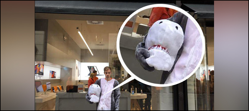 The arrested occurred when the man was standing outside a shop called McShark, dressed up as a shark in order to promote the new tech store in Vienna.