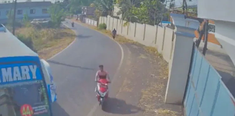 Viral video of a young man who was speeding on a scooter and miraculously avoided colliding with a bus that was taking a U-turn near Elyarpadavu, Mangalore. 🚌💨🛵