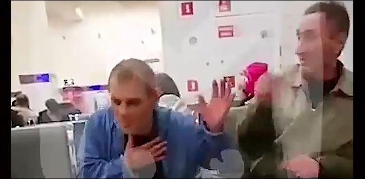 A video recorded by a passenger at the train station shows a row that started between two possibly drunk pals.
