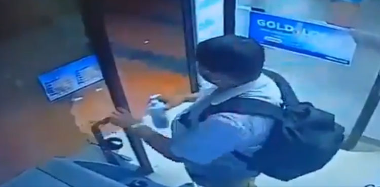WATCH: Man steals hand sanitiser from ATM vestibule