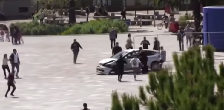 In the terrifying video, a car can be seen rampaging through the streets of Skanderbeg Square. People are seen trying to stop the car from hitting bystanders.