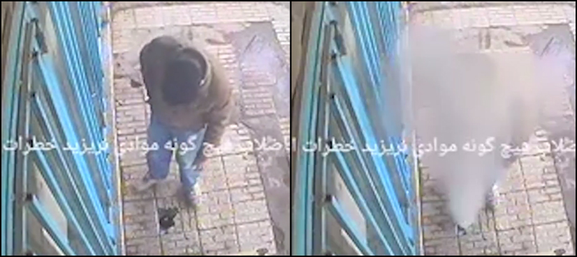 The moment probably occurred in Tehran, and shows the man throwing the cigarette butt down a hole, before a massive blast rocks the street seconds later.