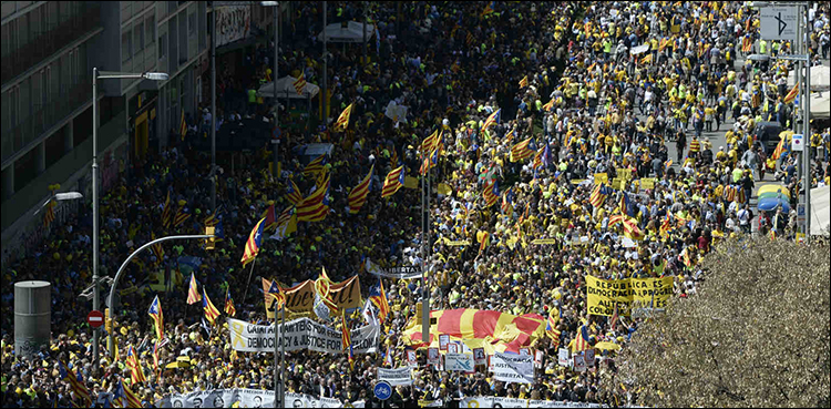 BARCELONA: Hundreds of thousands of people marched in Barcelona on Sunday to protest the jailing of nine Catalan separatist leaders facing trial on “rebellion” charges.