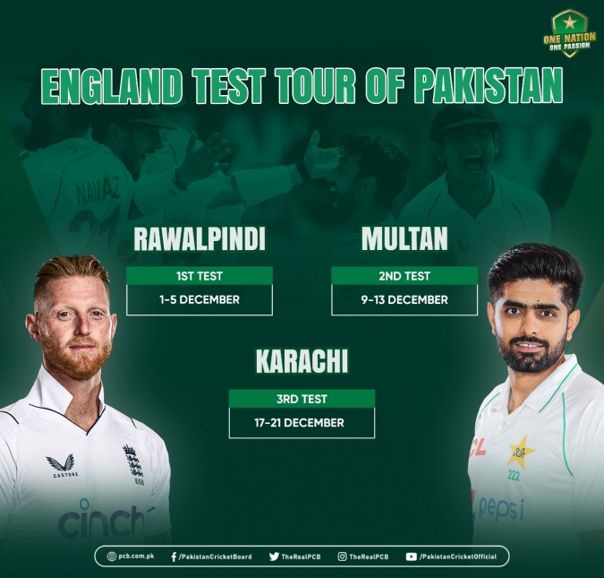 Ben Stokes’ side will open the tour with the first Test in Rawalpindi from 1-5 December, before both sides move to Multan for the second Test from 9-13 December. Karachi will host the third Test from 17-21 December.