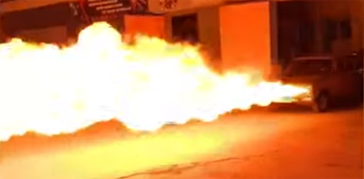 Just like a dragon throwing fire from his mouth, a mechanic improvised his car and turned it into a flame-throwing machine.