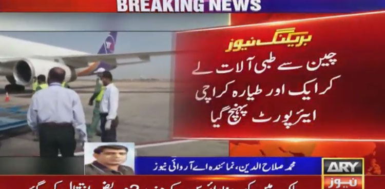 KARACHI: Another special plane of China carrying medical supplies regarding Coronavirus pandemic arrived in Karachi on Monday, ARY News reported.