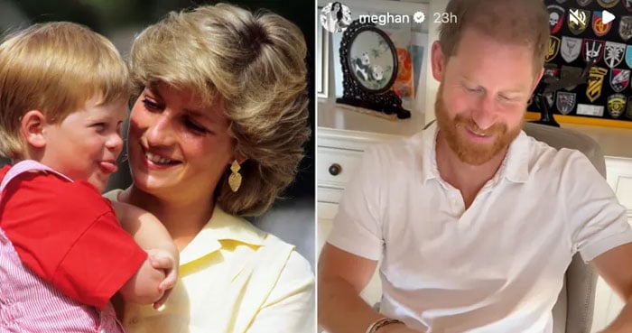 In the video, Prince Harry was seen sitting barefoot at his desk with a laptop as Meghan approached carrying a box of chocolates from her As ever brand’s collaboration with Compartés. The camera briefly panned across the room, capturing the photo of Diana alongside a display of military patches, reportedly gifted to Harry by Ukraine’s Invictus Games team.