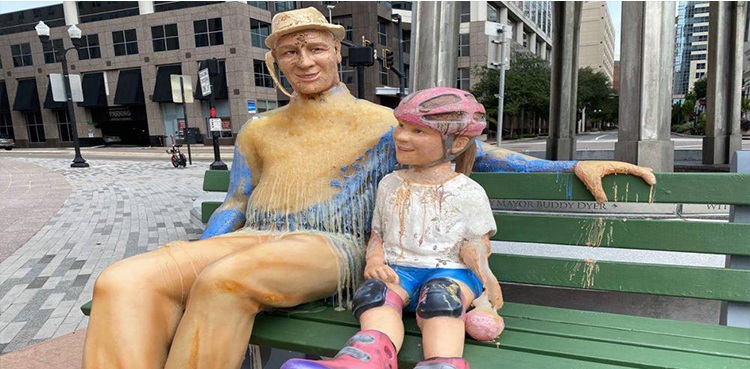 ORLANDO: A statue made out of wax is turning heads outside of Orlando City Hall to show the effects of climate change. The statue shows a grandfather and his grandson eating ice cream made entirely out of biodegradable wax.