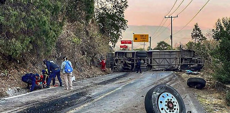 The accident took place in the state of Mexico, on the outskirts of the capital, when a bus overturned on the roadway, the local safety secretariat said.