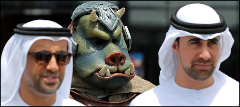 Emirati Saad Ibrahim and his two young sons arrived at the event dressed in head-to-toe Star Wars costumes: dad as Anakin Skywalker, and his two boys as the villans Darth Vader and Kylo Ren.