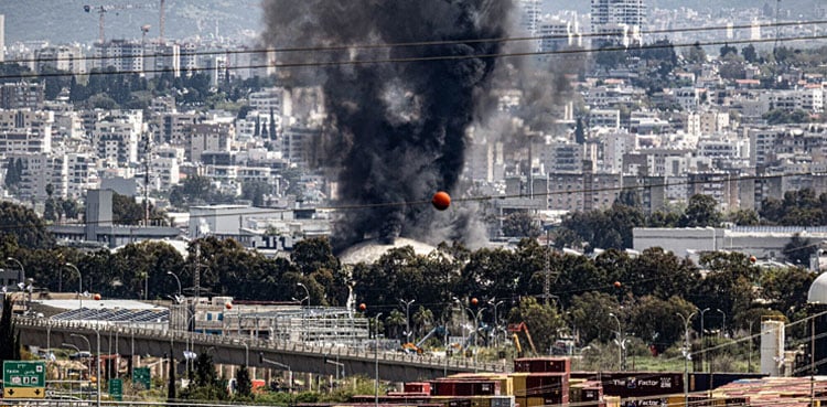 An industrial building and a fuel tanker at Israel’s Oil Refineries in the northern city of Haifa was hit by debris from an intercepted missile, Israel’s Fire and Rescue Service said on Monday.