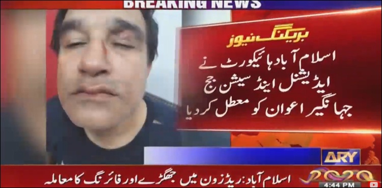 The additional session judge was shifted to PIMS hospital where medical examination found that he suffered from a fracture in his leg.