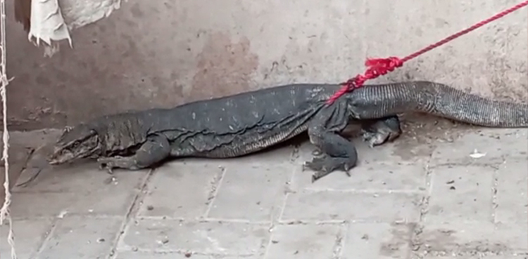 Sindh Wildlife Department confirmed that they received a message from the rescue officials about the capturing of a monitor lizard. The department’s officials will take the lizard into their custody from the rescue team.