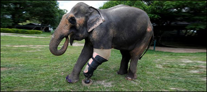 Mosha, who weighed only 600 kg when she was given her first artificial limb, now weighs over 2,000 kg.