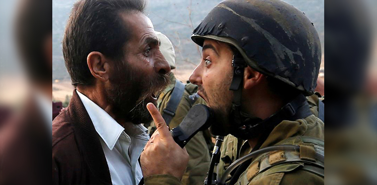 A Palestinian man argues with an Israeli soldier during clashes over an Israeli order to shut down a Palestinian school near Nablus, in the occupied West Bank, October 15.