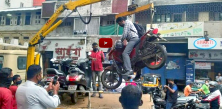 In a bizarre incident, a motorbike was towed in India’s Pune along with a rider sitting on it as it was parked in no parking area.