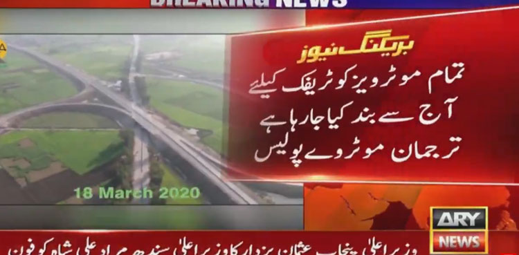 ISLAMABAD: All sections of the motorways have been closed for traffic in order to stop the spread of novel coronavirus, ARY News reported.