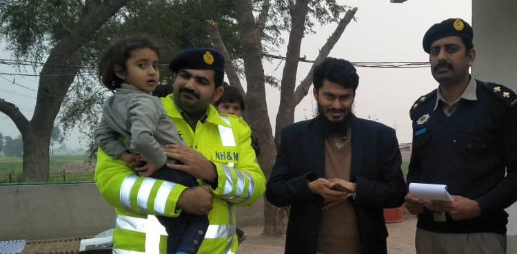According Motorway Police Inspector General Allah Dino Khawaja, the police received a call from a man named Abdul Haq at about 3:20PM informing them about a girl aged 3-4 years crying and looking for her father at his fuel station, Al-Haq petroleum.