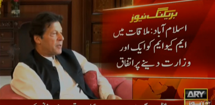ISLAMABAD: The Pakistan Tehreek-i-Insaf (PTI) government has agreed to give one more ministry to its ally Muttahida Qaumi Movement Pakistan (MQM-P) in Centre, ARY News reported on Wednesday.