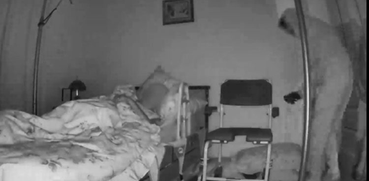 In the video, the mugger can be seen searching the victim’s bedroom using his mobile phone as a torch. The elderly woman is seen staring at him, but unable to react.