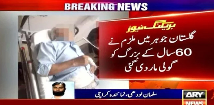 Muggers shot an elderly citizen over resistance in Karachi’s Gulistan-e-Johar area on Wednesday, ARY News reported.