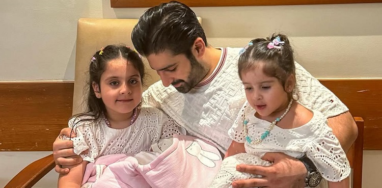 A-list actor and a proud girl-dad Muneeb Butt has shared adorable pictures with his and Aiman Khan’s three daughters.