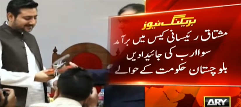 QUETTA: National Accountability Bureau (NAB) Chairman Javed Iqbal on Wednesday handed over keys of properties worth Rs1.25billion recovered from former finance secretary Balochistan Mushtaq Ahmed Raisani to the Balochistan government, ARY News reported.