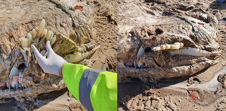 Photographs taken at the scene appear to show the remains as a grey husk with bone-like elements showing through parts of the carcass.