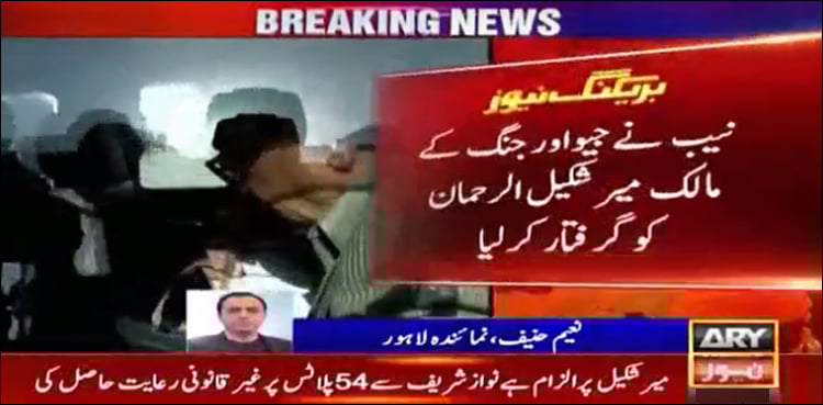 LAHORE: The National Accountability Bureau on Thursday apprehended the editor-in-chief of Jang Group of Newspapers and owner of Geo News Mir Shakilur Rahman in a case pertaining to a land scam, ARY News reported.