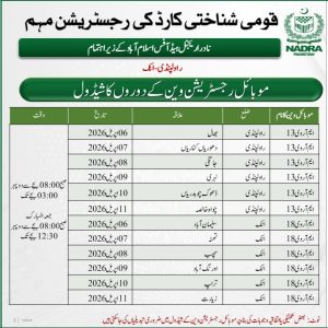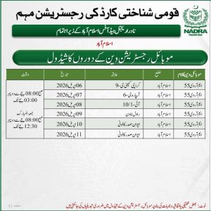 The initiative aims to provide essential registration services to residents who live far from NADRA centers. To find the specific schedule and locations for your area, please visit the official NADRA website.