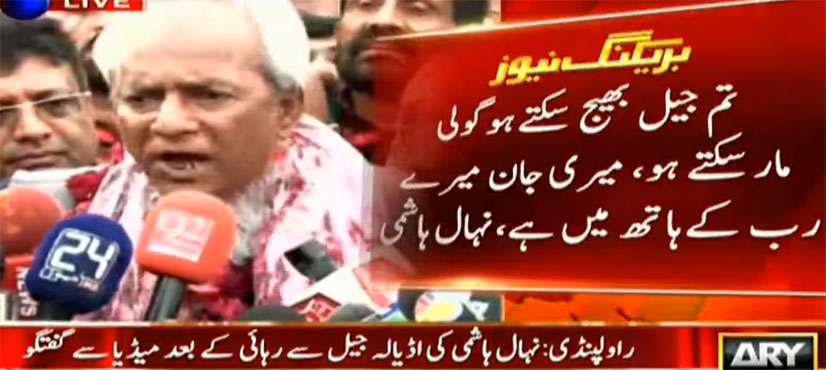 RAWALPINDI: Pakistan Muslim League-Nawaz (PML-N) leader Nehal Hashmi on Wednesday released from Adiala prison after completing a one-month sentence handed to him by the Supreme Court (SC) in a contempt of court case, ARY News reported.