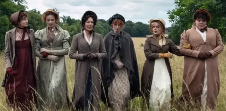 Netflix’s first look photo at the series shows Mrs Bennet and her five daughters together in what looks like a field.