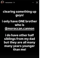 In her recent Instagram story on Thursday, whilst referring to her twin brother, Moroccan, whom she tagged in the post, “Clearing something up, guys, I only have ONE brother”.