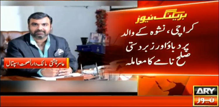 Sources had Amir Chishti along with another political personality had arrived at Liaquat National Hospital along with the hospital management to meet father of Nishwa.
