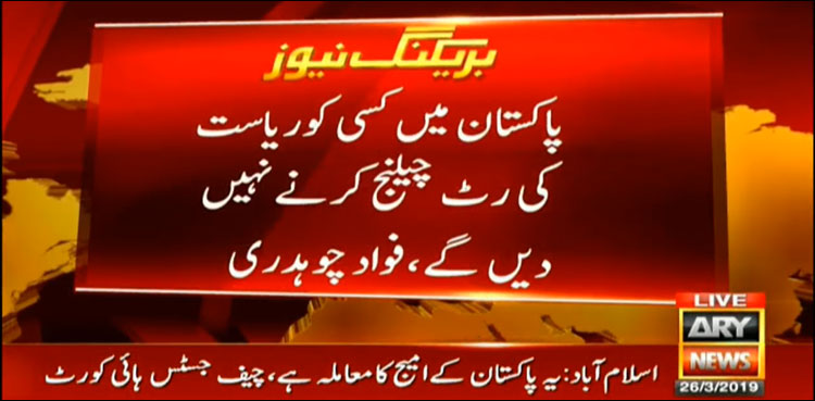 ISLAMABAD: Federal Minister for Information and Broadcasting Fawad Chaudhry has said no one will be allowed to challenge writ of the state, ARY News reported on Tuesday.