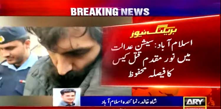 ISLAMABAD: A session court on Tuesday reserved verdict in the murder case of Noor Mukadam which involves Zahir Jaffer, who is allegedly involved in the entire horrific episode, ARY NEWS reported.