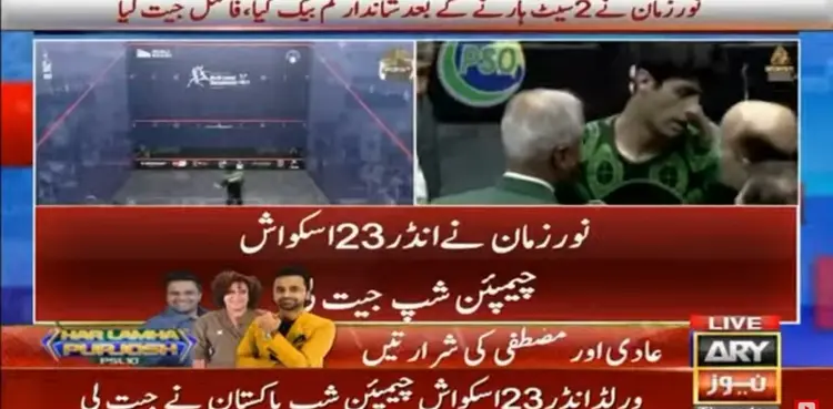 After losing the first two sets, the Pakistan squash star made a remarkable comeback in the final and defeated his opponent 3-2 in the U23 World Squash Championship final.