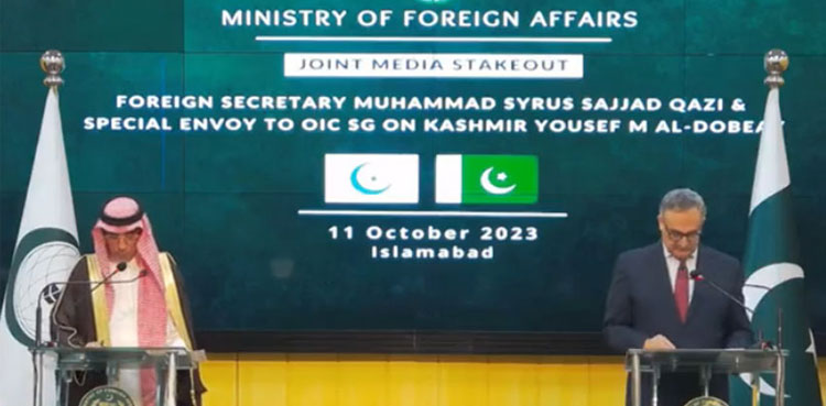 The remarks were made by OIC’s Special Envoy on Jammu and Kashmir, Yousef M Al-Dobeay during a press conference along with Foreign Secretary Syrus Sajjad Qazi.