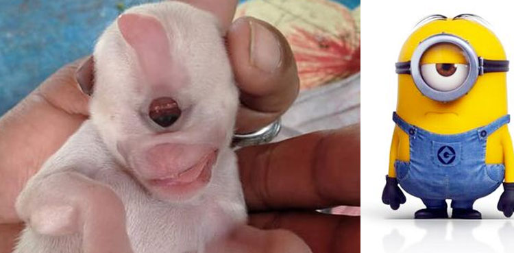 A puppy was born in Chachoengsao, central Thailand, with one eye in the middle of his head.