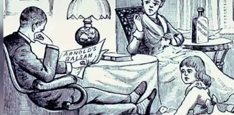 The black and white photo features a man sitting on a chair reading a newspaper while a woman sits on the opposite chair. A child can also be seen playing on the floor.