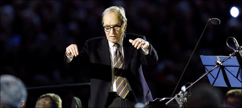 Morricone, 88, who won this year’s Academy Award for “The Hateful Eight,” premiered a new, short composition for the event called “God, One of Us,” and also conducted the orchestra in some of his most famous film sound tracks.