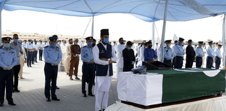 The funeral prayers were attended by Air Vice Marshal Ahmad Hassan, Deputy Chief of the Air Staff (Engineering) and Air Vice-Marshal Abbas Ghumman, Air Officer Commanding, Southern Air Command along with large number of PAF personnel, civil and military officials.