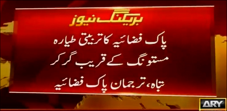 MASTUNG: A Pakistan Air Force pilot was martyred when his training aircraft crashed near Mastung, Balochistan, reported ARY News.