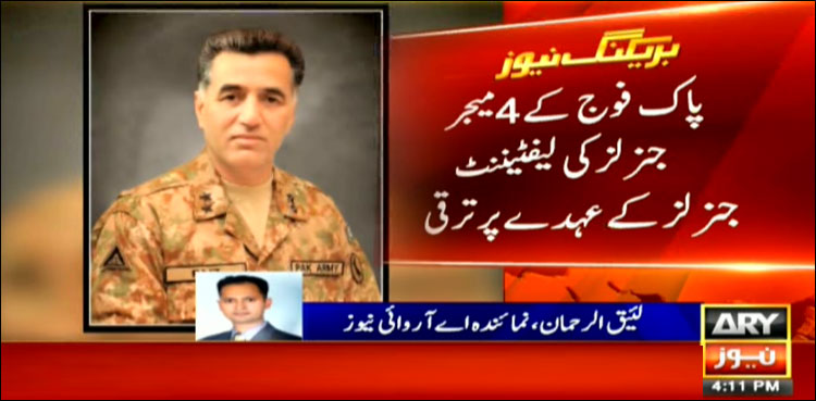 According to the military’s media wing, Major General Sahir Shamshad Mirza, Major General Nauman Mahmood, Major General Azhar Abbas and Major General Faiz Hameed have been promoted to the rank of lieutenant general.