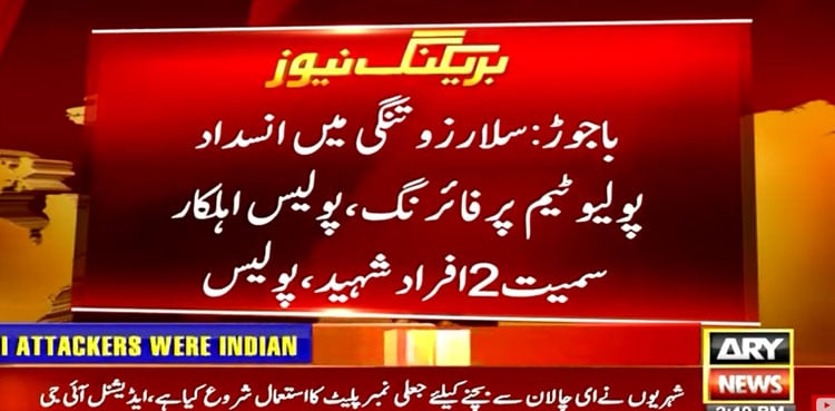 According to local police, the anti-polio team was targeted in Salar Zotangi area of Bajaur, Khyber Pakhtunkhwa.