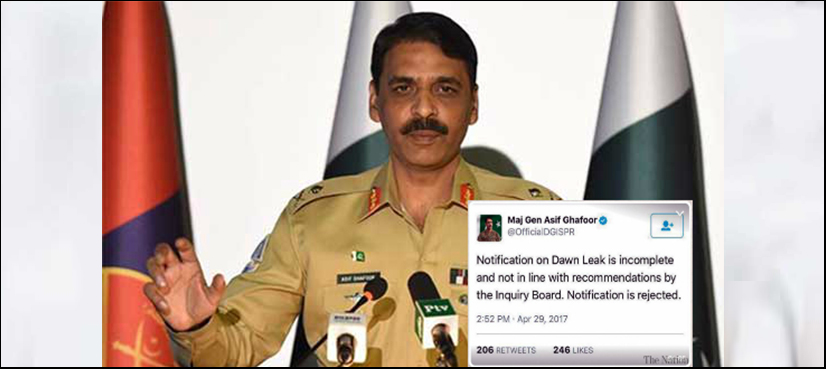 “Notification on Dawn Leak is incomplete and not in line with recommendations by the Inquiry Board,” said the military press wing. “Notification is rejected,” it stated.