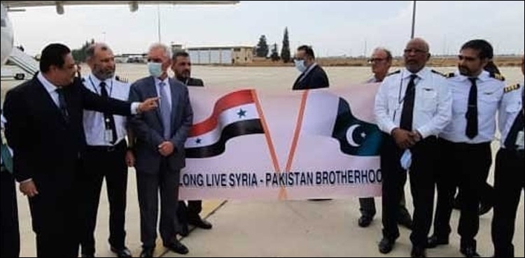 The supplies were delivered on a Pakistan International Airlines (PIA) Boeing-777 aircraft that landed at the Damascus International Airport on Sunday.