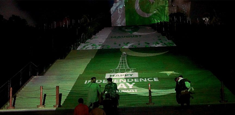 In the light show, 198 stairs and the monument were lit up with images of the Pakistani flag and pictures of the Minar-e-Pakistan.
