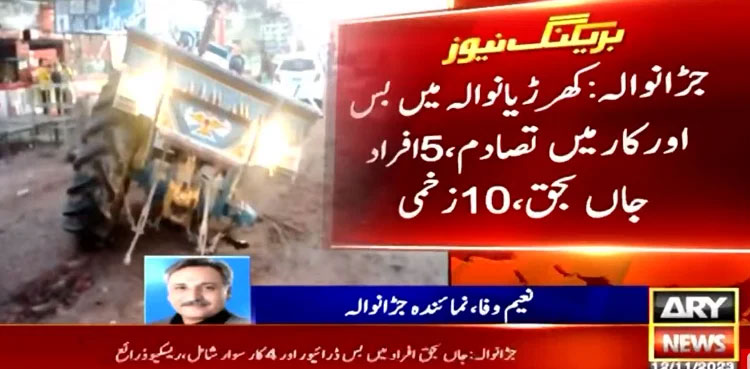 The accident occurred in Kharianwal where a speeding passenger van crashed into a car at Darmanwala Morr, Jaranwala.